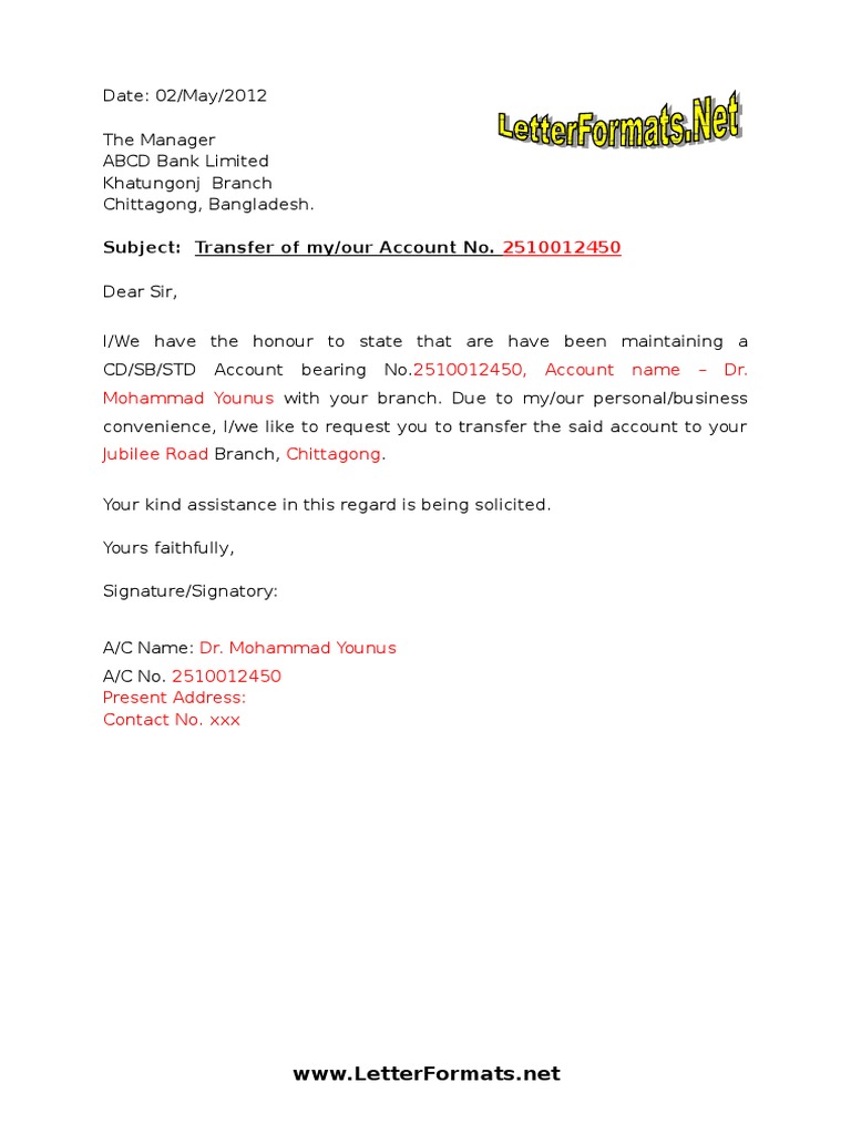 Letter To Close A Business Bank Account Writeletter2 Com from writeletter2.com (9 days ago) change of bank account letter to customers database. The letter has to be printed on the letterhead of the company and will be submitted to the bank duly signed along with supporting documents as evidence of the as the name of the company has been changed, we request you to kindly update the same and change the name of the current account of. I am writing this letter to you so that i can tell you about the details of my bank account. A free letter asking your bank to close your account, along with tips to make sure it goes smoothly. You may want to change a business bank account name for a number of reasons including a company acquisition or rebrand. If you have any questions about these changes, you can contact me by mail at my new address or by telephone at work phone number during business hours. Some banks, like pnc, offer business bank account transfer kits , specifically designed to make the process of changing business bank accounts this letter will inform them of the change, instruct them not to file payments through your original bank account, and provide them with your new bank. I am hereby writing this letter to request you to change my bank account and deposit my salary into a new bank account used by me.