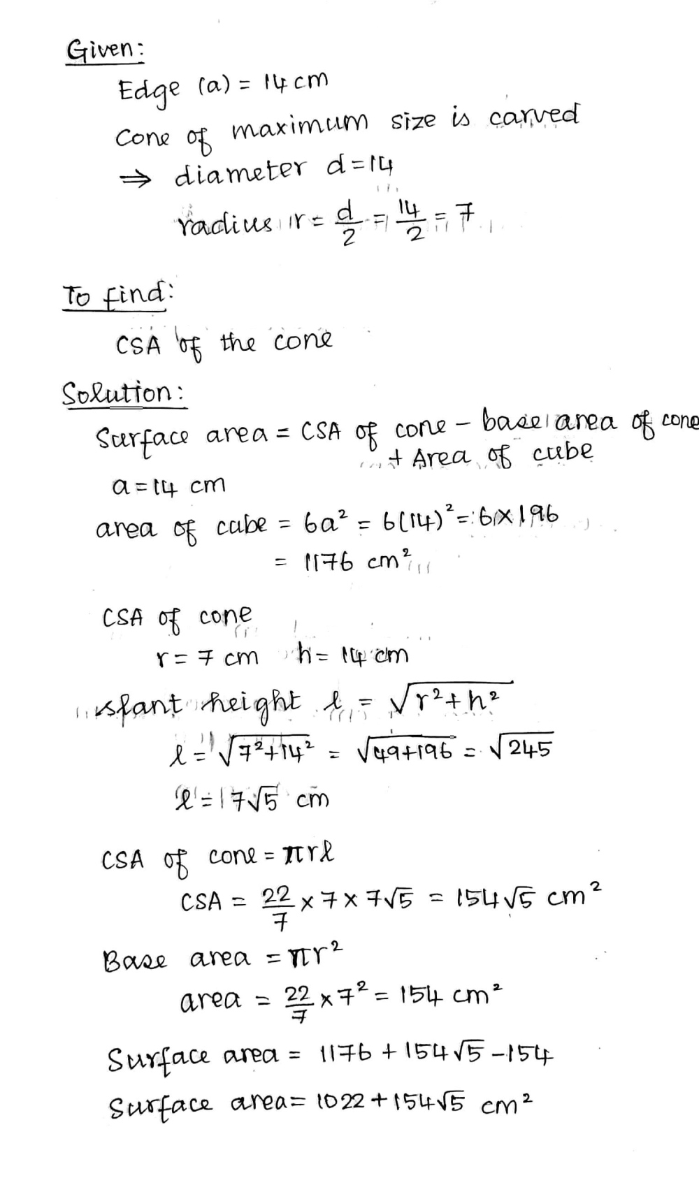 Volume of square based pyramid. We will find the csa of the cone by using formulae since the funnel is open at the top and the bottom. This is csa cone by irevise.com on vimeo, the home for high quality videos and the people who love them. .height of cone, volume of cone, curved surface area(csa) of cone, total surface area(tsa). Tsa = csa of hemisphere + csa of cone. An open metal bucket is in the shape of a frustum of a cone of height 16cm with radii of its lower and upper ends as 8cm and 20cm respectively. What does csa stand for in cone? The point is called the vertex of the cone. A frustum decb is cut by a plane. So the csa of a cylinder will be: sqrt(r² + h²) curved surface area(csa) of cone: A cone is a solid object whose base is a circle and another part is a smooth curved surface that symmetrically ends at a point in space. The surface area of a cone is equal to the curved surface area plus the area of the base a cone was formed by rolling a thin sheet of metal in the form of a sector of a circle with diameter.